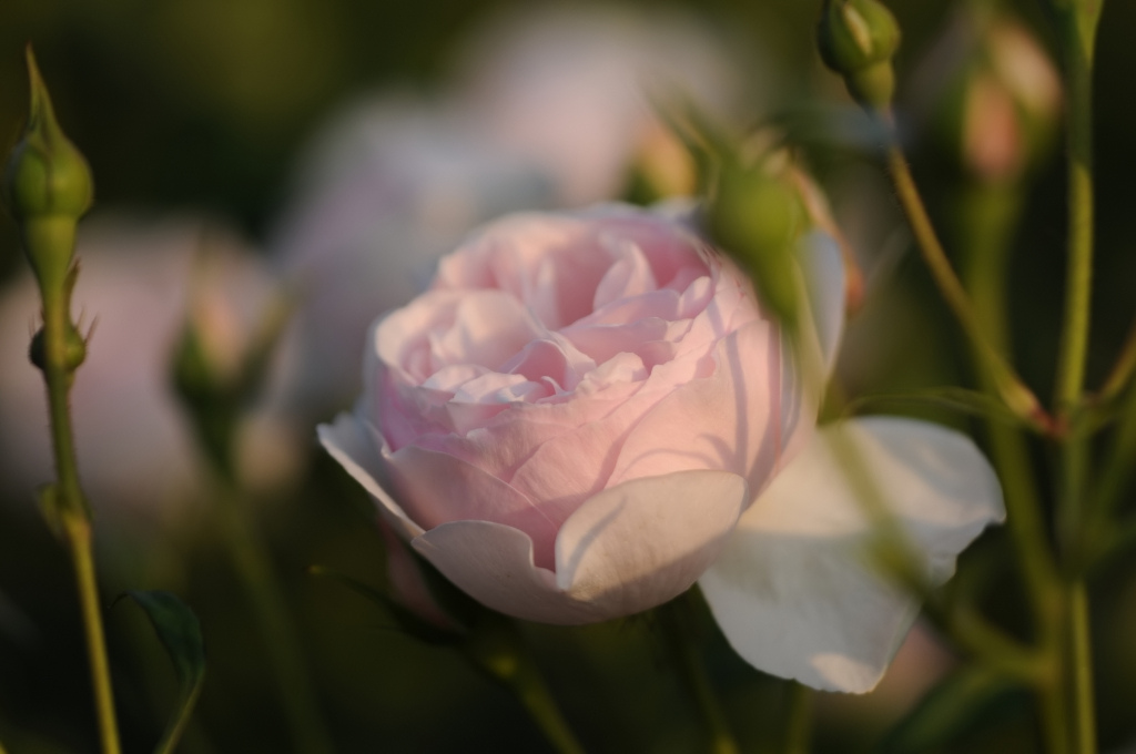 Heritage – одна из лучших и наиболее популярных английских роз. Цветет обильно, двумя или тремя волнами, с одиночными цветками между ними, до первых морозов. Средних размеров цветки старинного стиля имеют идеальную чашевидную форму, густомахровые, редко раскрываются полностью. Они нежного, чистого лососево-розового цвета в центре, в то время как внешние лепестки кремово-белые. Сорт производит впечатление невероятной нежности и деликатности. Аромат сильный, приятный, с медовыми и лимонными тонами. Красивой формы куст, с крупной гладкой, блестящей листвой и практически бесшипными побегами, сильный, ветвистый, легко дает новые побеги от основания со все новыми цветками. Обильно цветет повторно. Сорт лучше себя чувствует в прохладном климате, и заслуживает своей популярности за здоровье, обильность цветения и нежную красоту цветков. Устойчив к морозам.