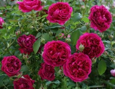 Великолепный сорт с восхитительными цветками яркого бархатно-карминно-красного цвета, со временем переходящего в столь же насыщенный пурпурно-лиловый. Вначале цветки глубоко чашевидные, затем открываются и становятся более плоскими и квартированными. Куст быстрорастущий, прямостоячий, обильно ветвится и одет крупной, матовой, чисто зеленой листвой. Аромат – насыщенный и сложный - mix розы с фиалкой, напоминающий запах старинных роз. Как отзываются розоводы: «Аромат пленит на расстоянии, хочется лишний раз прогуляться мимо розы». Превосходная устойчивость к заболеваниям.