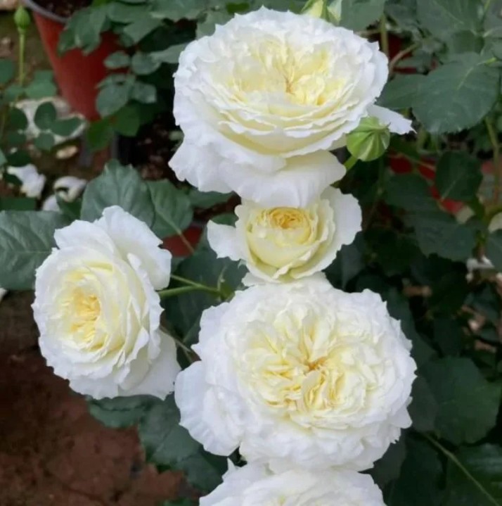 Роза в романтическом стиле. Цветы - плоские розетки идеальной формы со взъерошенными лепестками, напоминающими тонкое кружево. Сильный аромат старинных роз с элементами фруктов, сирени и мирры.