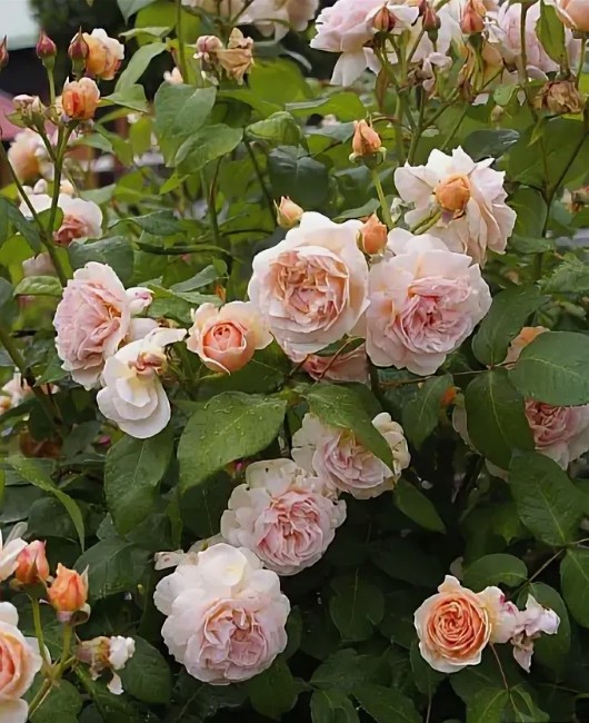 У этой розы изящные некрупные бутоны раскрываются в розетковидные цветки чистого абрикосового цвета, обычно с заметной пуговкой в центре. Сильно пахнут чайной розой. Листья очень привлекательные, длинные, элегантные, с заостренными концами, светло-зеленые. Куст прямостоячий, что создает неожиданный эффект в сочетании с листвой. Сорт очень выносливый, выпускает большое количество побегов от основания, отчего куст быстро загущается, и нуждается в прореживании, в противном случае количество цветков уменьшается.. Розе нужно некоторое время, чтобы показать себя во всей красе. (DAER)