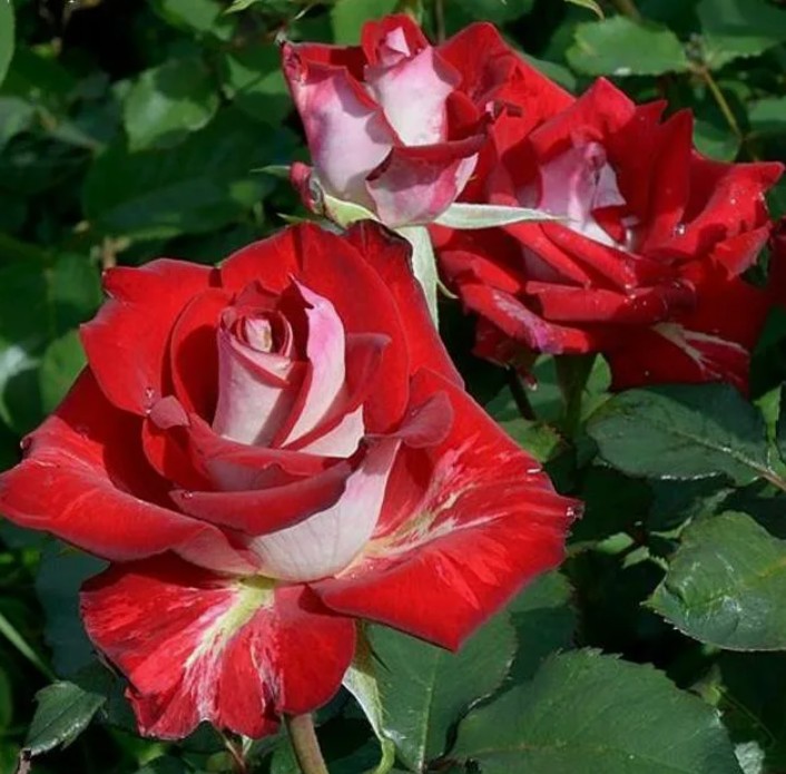 Японские селекционеры подарили миру мощный и рослый сорт. Одиночные цветки нежные, двухцветные, необычайной окраски, лепестки белые снаружи и красные изнутри. Кончики лепестков в прохладную погоду становятся темно-бордовыми, почти черными. Плотный бокаловидный бутон. Кусты высокие, прямые, ветвистые, с темно-зеленой, глянцевой листвой. Цветоносы требуют пасынкования (выщипывания пазушных побегов). Эффектный завораживающий сорт.
