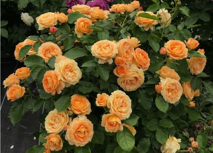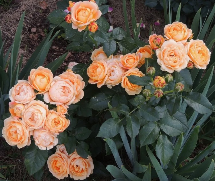 Энергичная, быстрорастущая некрупная флорибунда. Цветение непрерывное, обильное с начала мая до заморозков. Цветы абрикосово-желтые или оранжевые, красиво смотрятся на фоне темно-зеленой листвы. Сорт идеален для бордюров и малых массивов