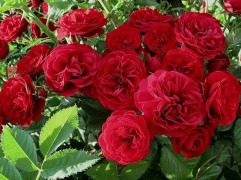 Цвет темно-красный. Умеренный аромат. От 90 до 100 лепестков. Цветки средние, густомахровые, в небольших кистях, квартированной формы. Цветет в течение всего сезона. Сорт идеален для клумб, бордеров, в качестве контейнерной культуры и в срезке. Высота от 60 до 100 см. (helpmefind)